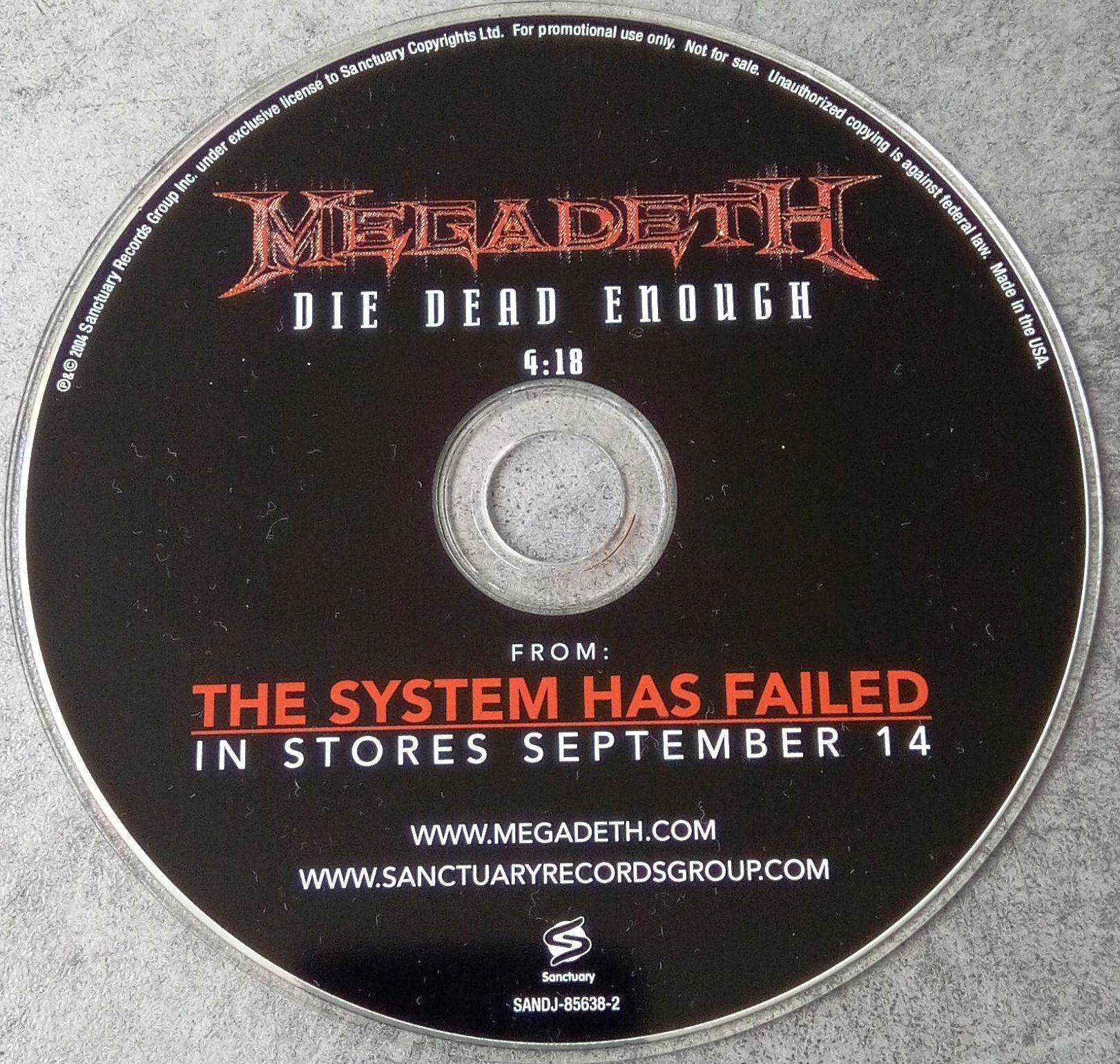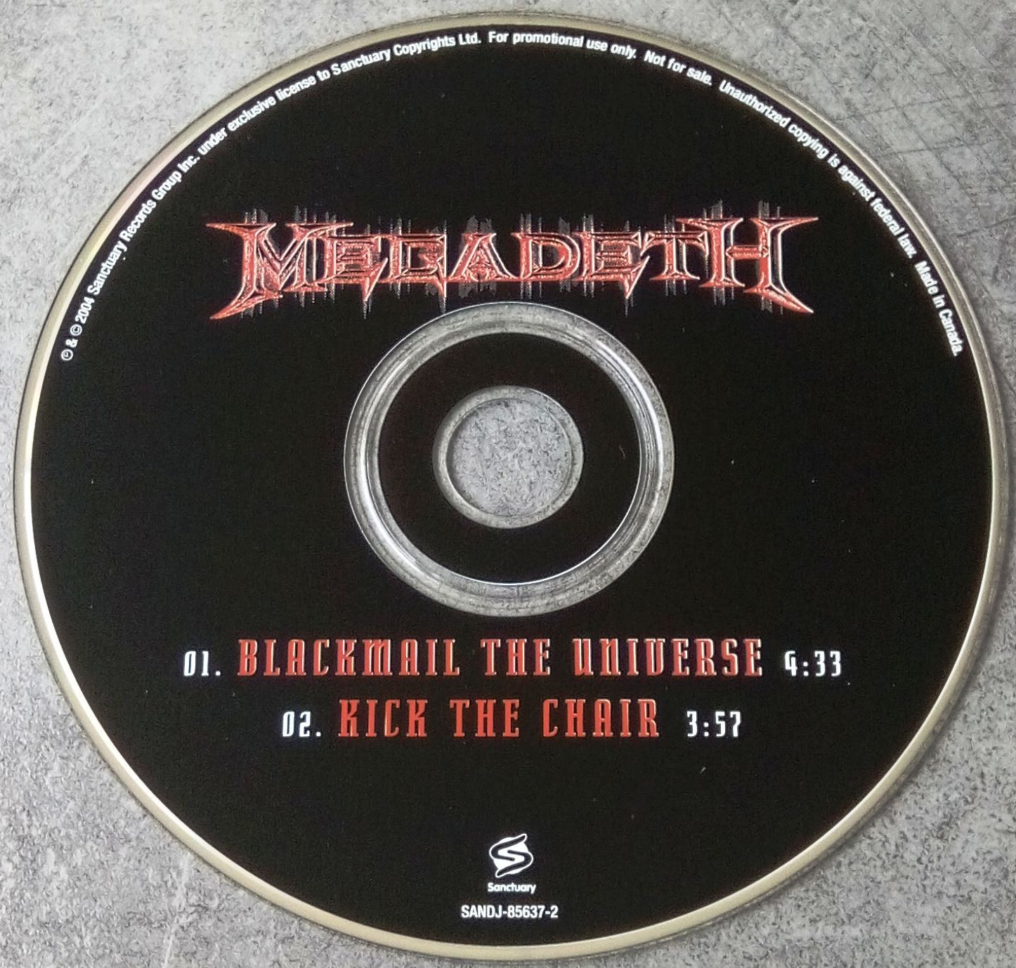 Sanctuary Records – SANDJ-85638-2- Single 1 Track 2004 Promo USA