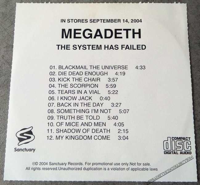 Sanctuary Records – SANPR297- Card Board Sleeve-12 Tracks 2004 Promo Europe